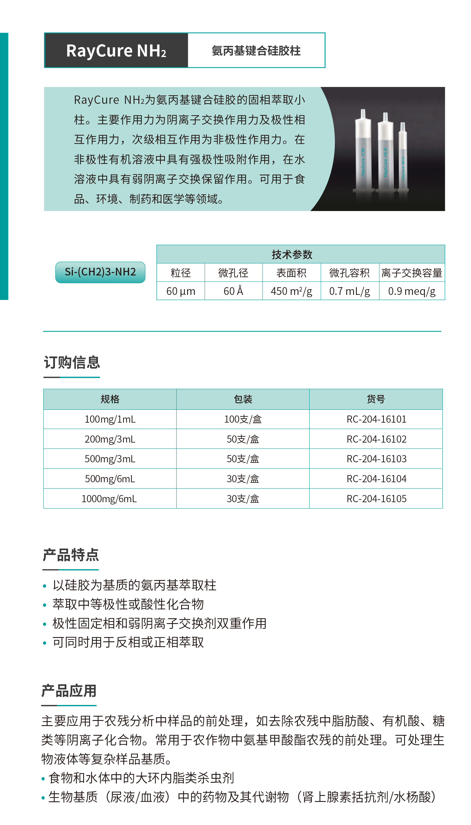 RayCure NH2 氨丙基鍵合硅膠柱