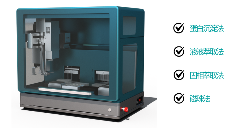 以睿科自動(dòng)化移液工作站為核心,按需選配正壓模塊、振蕩模塊、磁吸模塊、氮吹模塊等功能模塊,自動(dòng)化、高通量地完成蛋白沉淀、固相萃取、液液萃取、磁珠純化等操作,為合成生物學(xué)中基于質(zhì)譜檢測(cè)的樣品前處理實(shí)驗(yàn)高效自動(dòng)化。