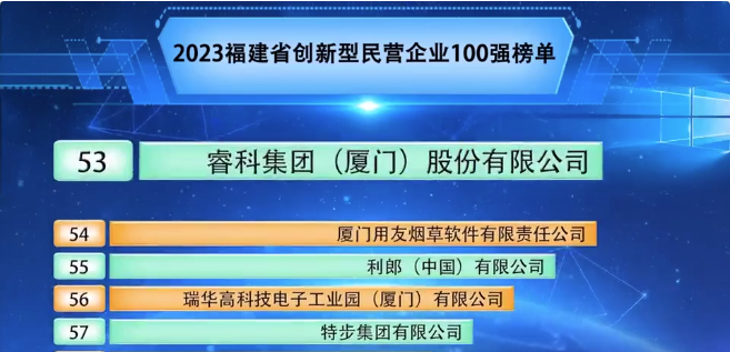 喜訊!睿科集團榮登2023福建省創新型民營企業100強榜單