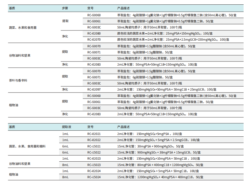 常見植物源性食品農(nóng)殘檢測之“QuEChERS”法耗材合集