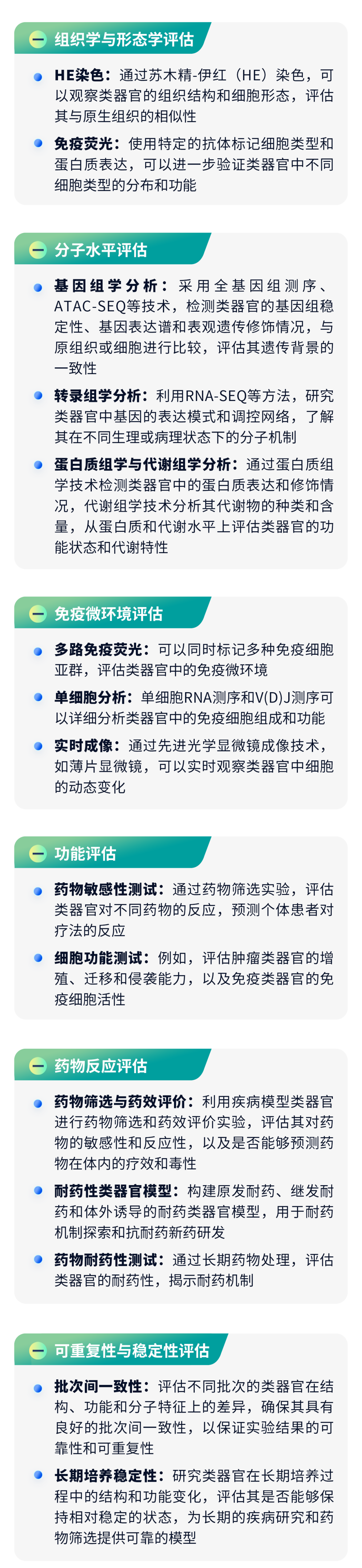 為了確保類器官模型的有效性和可靠性,對其進行系統的評估是至關重要的。類器官模型評估是一個多維度、綜合性的過程: