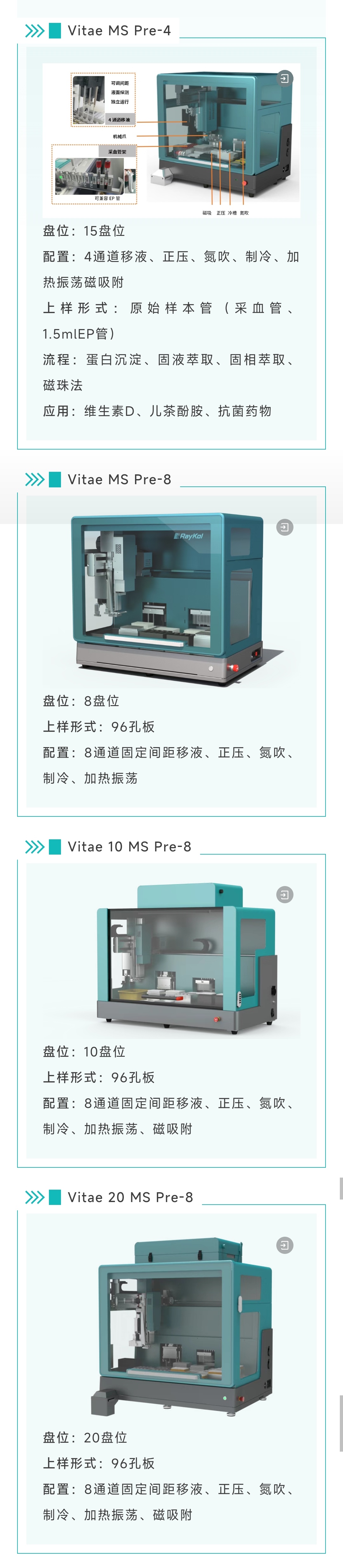 ◆ 機型豐富,可選上原始樣本管,也可選上孔板,可根據用戶具體需求來選擇不同型號和配置;