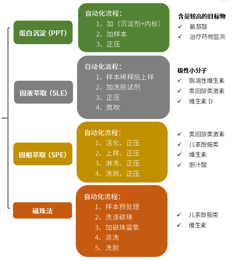 ◆ 同時兼容蛋白沉淀、固相萃取、固液萃取、液液萃取、磁珠法等流程;